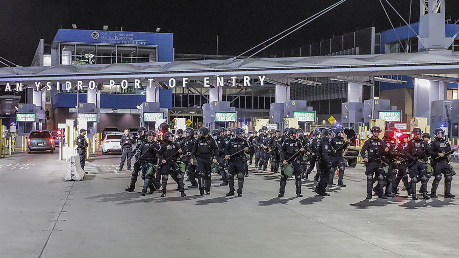 En el cruce de Tijuana a San Diego, los agentes se desplegaron en los carriles 28 al 34, en donde realizaron diversas maniobras de contención, además lanzaron varias bombas de gas y durante los aproximadamente seis minutos que duró el despliegue también se escucharon algunas detonaciones.
