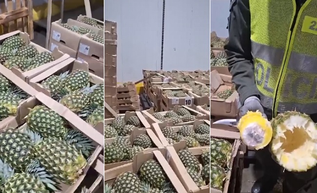 Autoridades colombianas incautaron 63 kilos de estupefacientes dentro de piñas en Cartagena