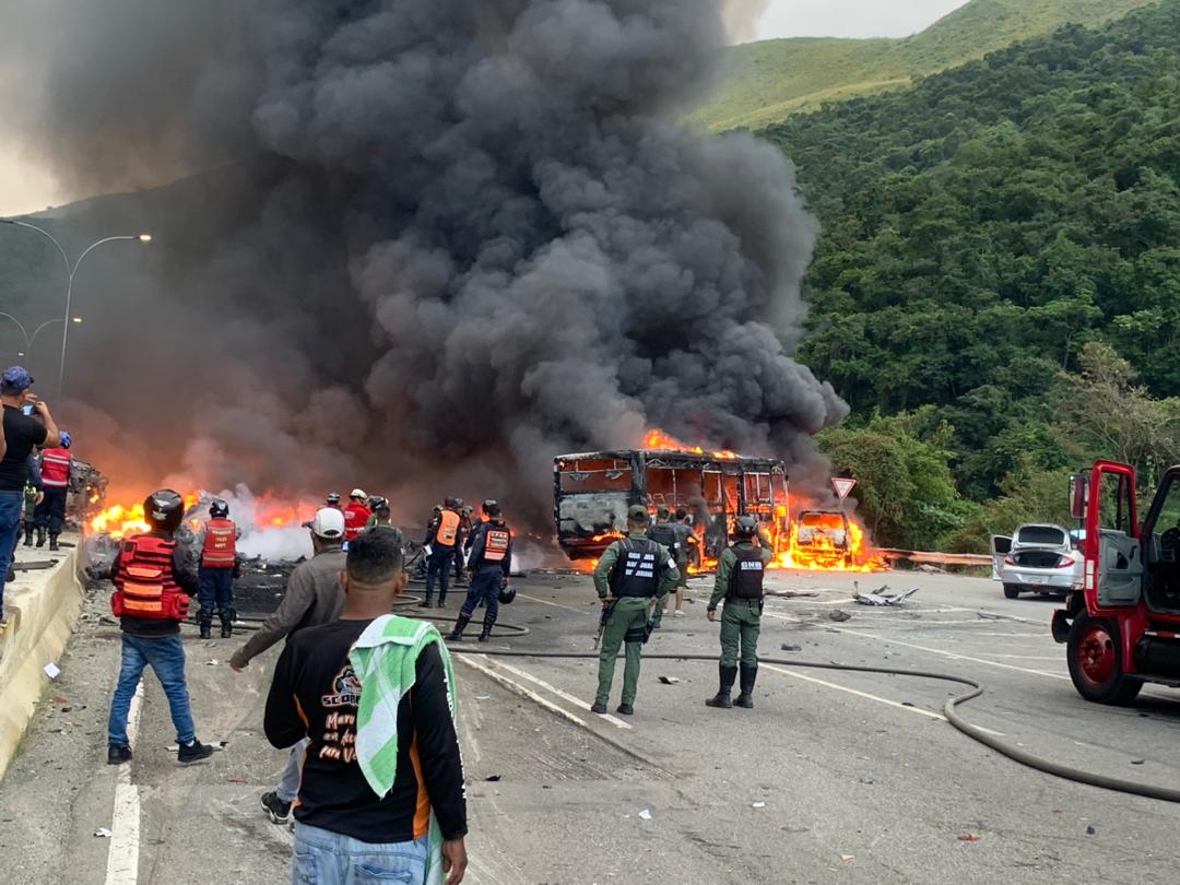 «Están involucrados 17 vehículos», señaló. «Un vehículo de carga a alta velocidad impactó contra estos vehículos que estaban en la autopista» por un incidente previo, un choque sin heridos, precisó Pérez Ampueda.