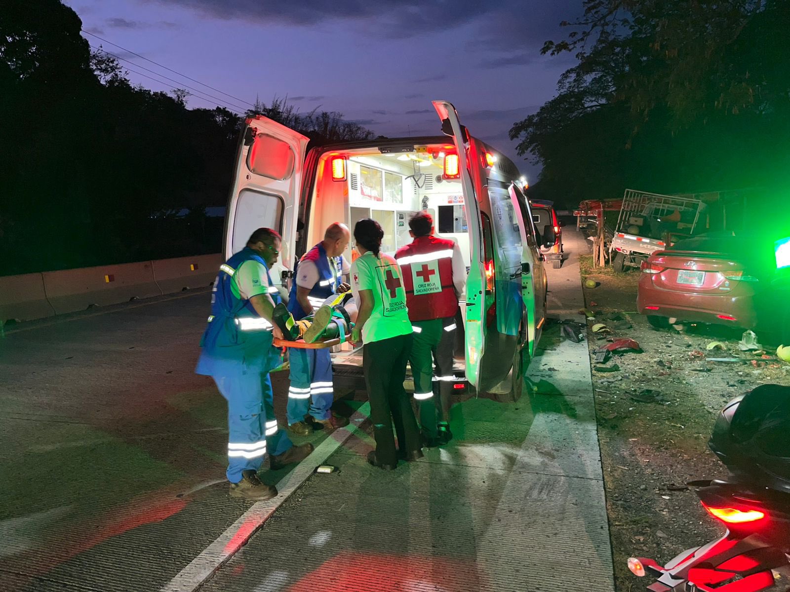Personal de la Cruz Roja Salvadoreña se desplazó rápidamente al lugar del accidente para atender la emergencia. Los paramédicos brindaron asistencia médica inmediata a una persona que resultó con diversas lesiones tras el impacto. Tras ser estabilizada en la escena, la víctima recibió los cuidados necesarios para descartar complicaciones mayores.