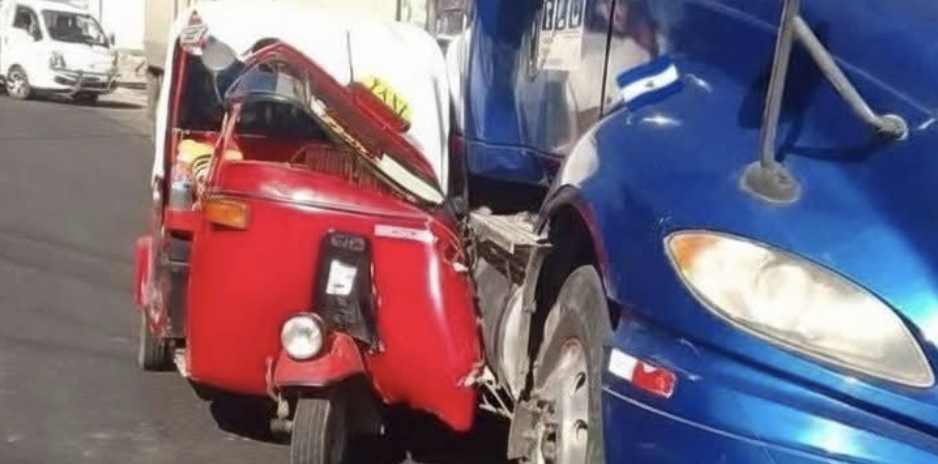 Un accidente de tránsito se reportó este día en el desvío de Ciudad El Triunfo, donde se vieron involucrados una mototaxi y una rastra.