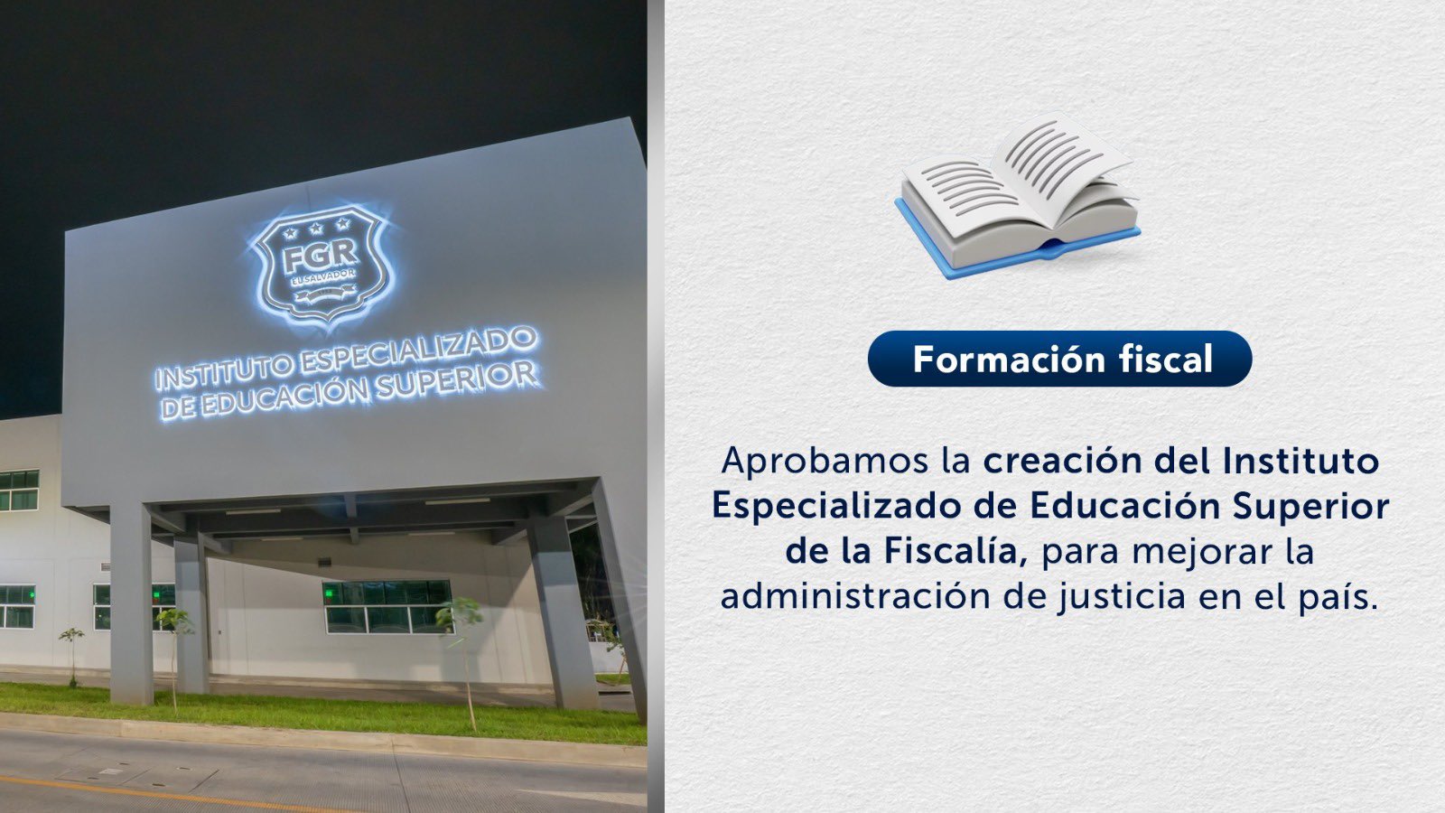 La Asamblea Legislativa aprobó este miércoles, con el voto unánime de todas las fracciones, la Ley de creación del Instituto Especializado de Educación Superior de la Fiscalía General de la República (FGR). Esta nueva institución tiene como objetivo principal la formación técnica y científica de los fiscales y personal jurídico, aspirando a convertirse en un referente de educación especializada en Centroamérica y el Caribe.