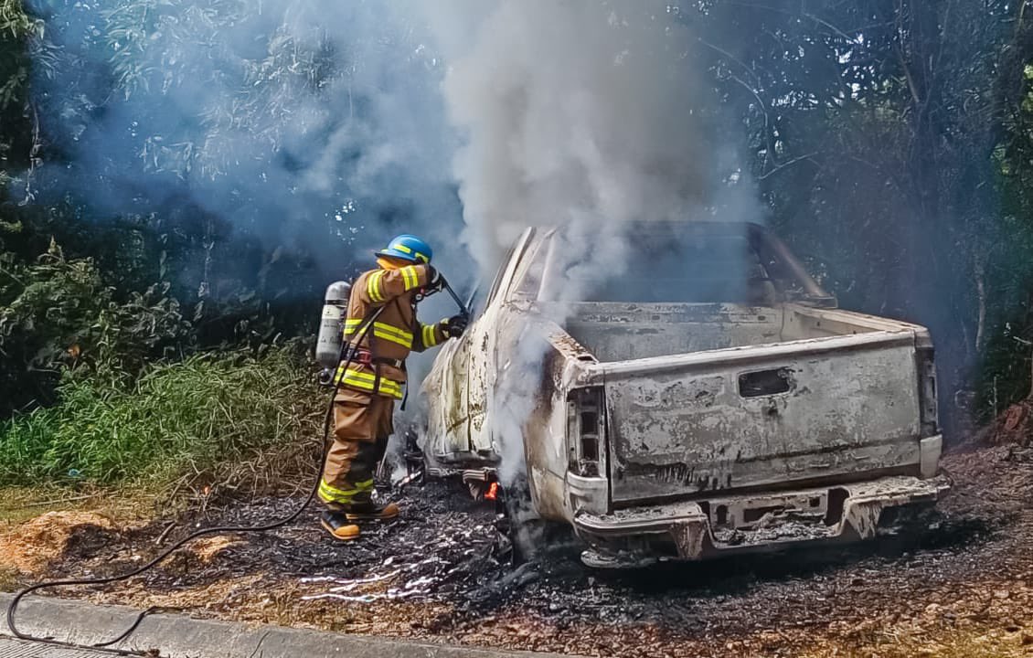 El Cuerpo de Bomberos de El Salvador atendió una emergencia por un vehículo incendiado en el cantón Santa Rosa, ubicado en el distrito de San Ignacio.