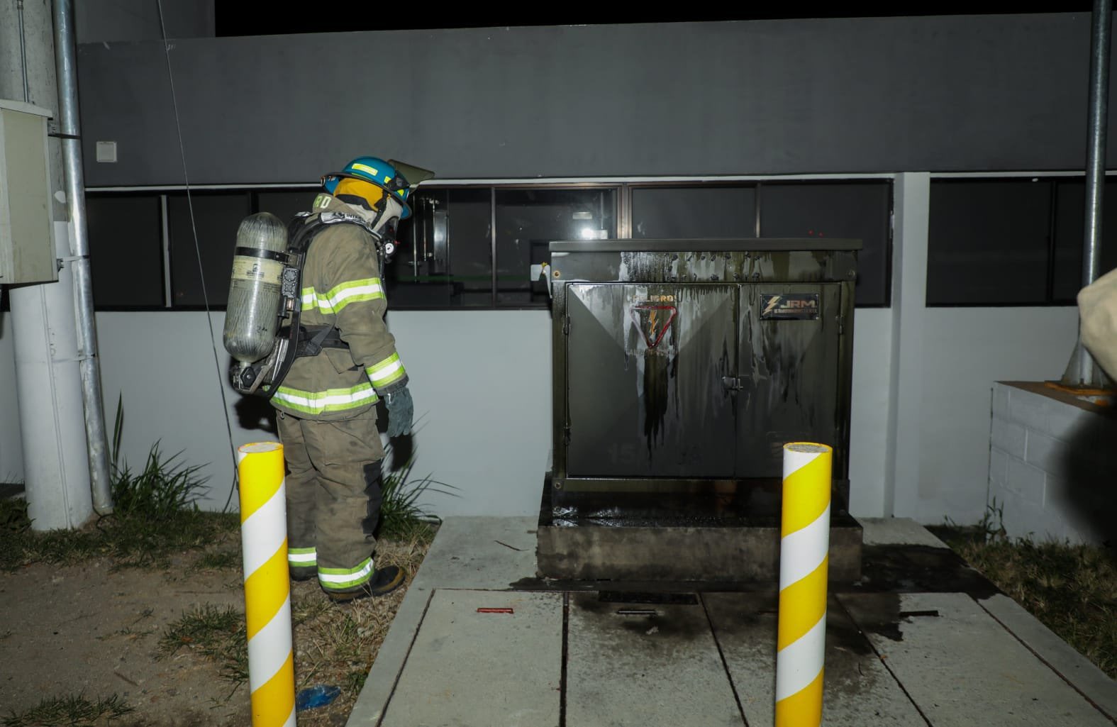 El Cuerpo de Bomberos atendió anoche un reporte de incendio que afectó un gabinete de transformador eléctrico.