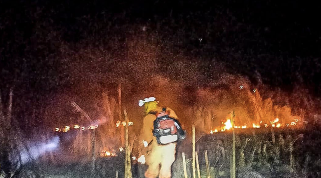 De acuerdo con el reporte oficial, las llamas se propagaron rápidamente debido a la presencia de abundante maleza seca y hojarasca, materiales altamente inflamables que facilitaron la expansión del fuego hacia diversas áreas del terreno.
