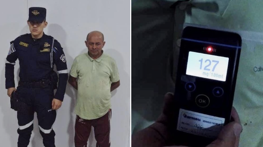 En el bulevar Monseñor Romero, a la altura del kilómetro 13 en Santa Tecla, La Libertad, fue detenido Henry Bladimir Miranda Velásquez, de 34 años. Tras realizarle la prueba de alcotest, el resultado fue de 122∘ de alcohol en su sangre.
