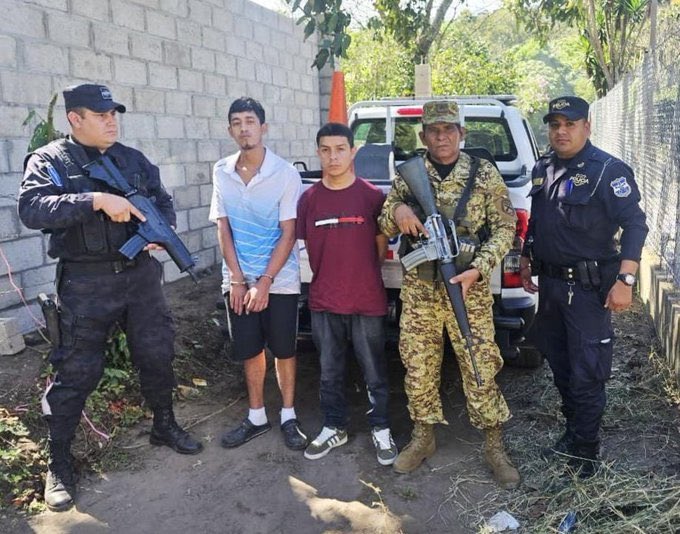 En el marco de un patrullaje de seguridad, la Policía Nacional Civil (PNC), con el respaldo de la Fuerza Armada de El Salvador, logró la intervención y captura de dos sujetos con órdenes judiciales de arresto por pertenecer a la estructura criminal MS13.