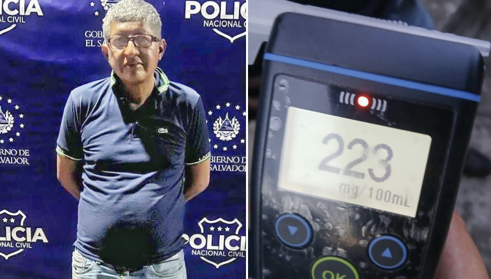 El hecho ocurrió en la 7ª calle Oriente del barrio El Ángel, en Sonsonate Centro, donde el hombre chocó contra un vehículo. Según el informe oficial, no hubo víctimas, el percance solo dejó daños materiales. Al realizarle la prueba de alcotest, resultó con 223° de alcohol en sangre. Ahora, el conductor será remitido por el delito de conducción peligrosa de vehículo de motor.