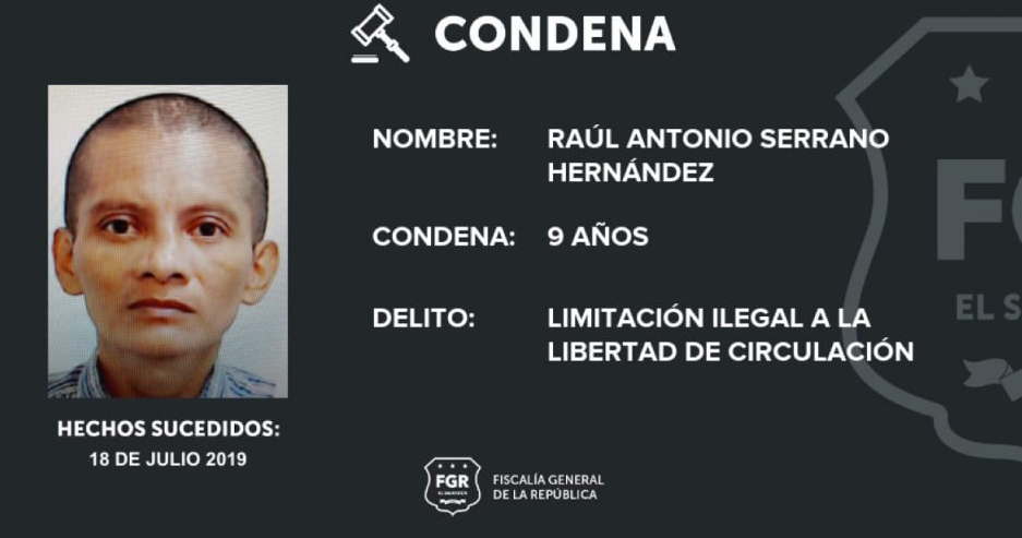 Gracias a la abundante prueba que presentó la Fiscalía General de la República en juicio, Raúl Antonio Serrano Hernández, alias “Gallo Negro”, fue condenado a nueve años de prisión por haber impedido que una familia residiera en su vivienda, ubicada en Jayaque, La Libertad.