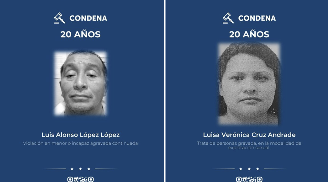 Luisa Cruz fue hallada culpable y condenada a 20 años de prisión tras determinarse su responsabilidad en el delito de explotación sexual de la menor. Según las investigaciones fiscales, Cruz facilitaba y se lucraba de la vulnerabilidad de la víctima. Por su parte, Luis Alonso López también recibió una condena de 20 años de cárcel por abusar sexualmente de la niña en reiteradas ocasiones, aprovechando el entorno de explotación creado.
