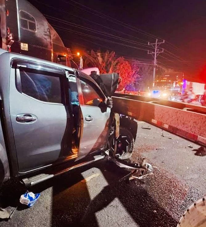 La Policía Nacional Civil (PNC) atendió un accidente de tránsito ocurrido durante la noche del jueves en el kilómetro 82 de la carretera que conduce hacia Acajutla, en el distrito de Sonsonate Oeste. El siniestro se produjo cuando el conductor de un pick-up impactó contra una rastra, mientras el motorista del vehículo de carga realizaba maniobras sobre la vía.