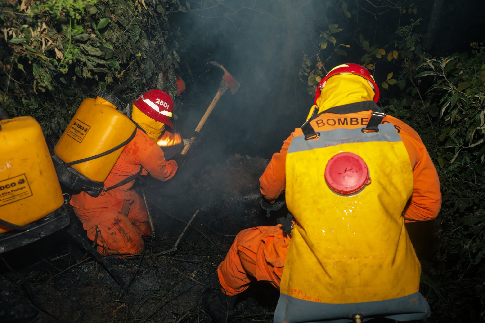 Un equipo del Cuerpo de Bomberos de El Salvador intervino anoche para controlar un incendio registrado en un terreno con abundante maleza seca y hojarasca, ubicado en el sector de Lomas de Candelaria, sobre la calle que conduce a Huizúcar, en San Salvador.