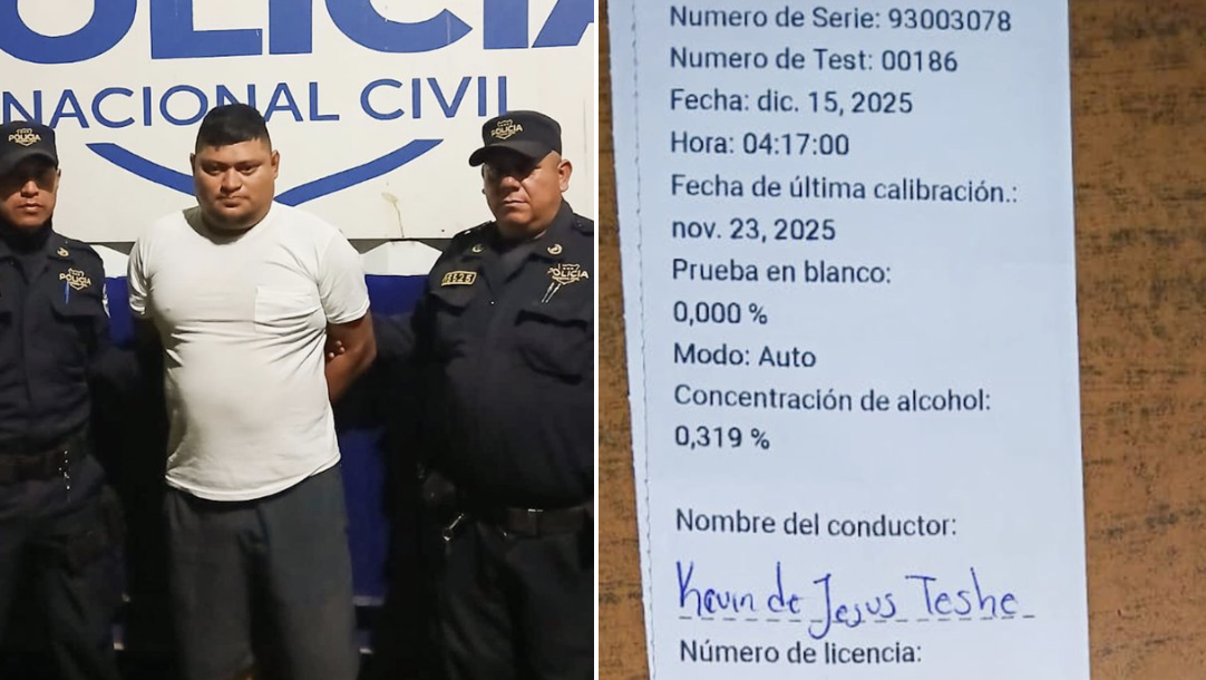 El detenido es Kevin de Jesús Teshe Delgado, quien protagonizó un accidente de tránsito al chocar contra un vehículo pick up que se encontraba estacionado.
