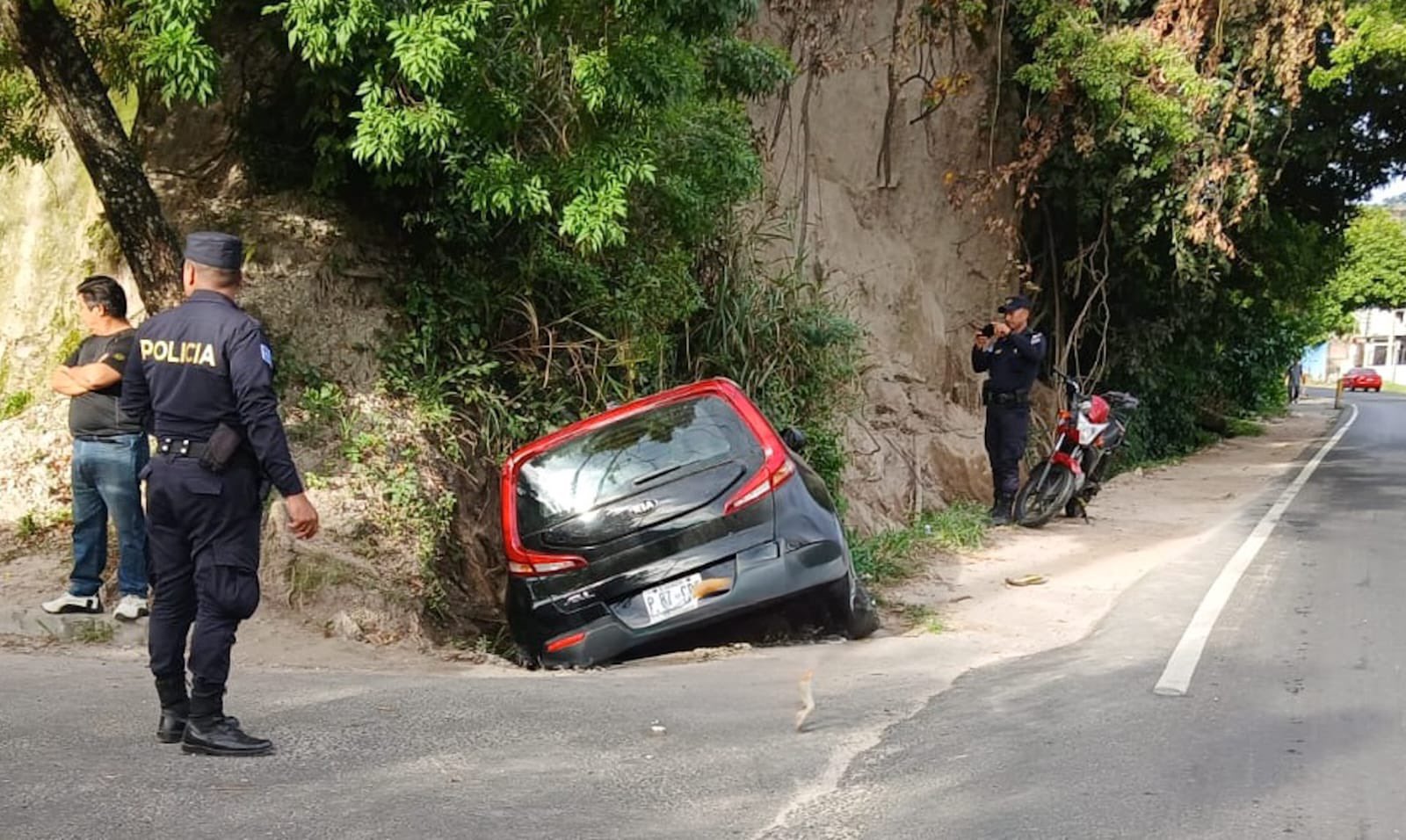 La Policía Nacional Civil (PNC) se movilizó para inspeccionar un accidente de tránsito ocurrido en el kilómetro 13½ de la carretera antigua a Quezaltepeque, en el departamento de La Libertad.