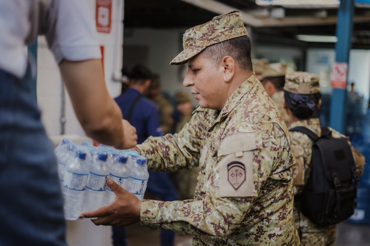 Entre dichas instituciones, se encuentra la Fuerza Armada, quienes se están encargando de distribuir agua embotellada para consumo de las familias afectadas.
