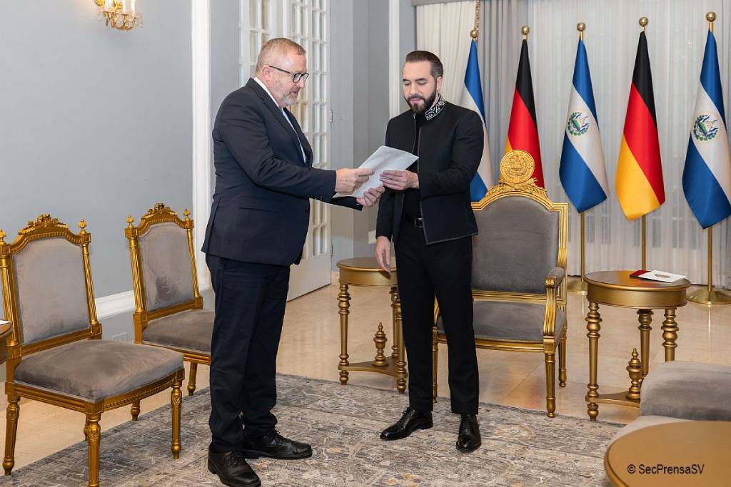 El embajador de Alemania en El Salvador, Friedo Sielemann, presentó oficialmente sus cartas credenciales al presidente Nayib Bukele, marcando el inicio de su mandato como máximo representante diplomático de la nación alemana en el país.