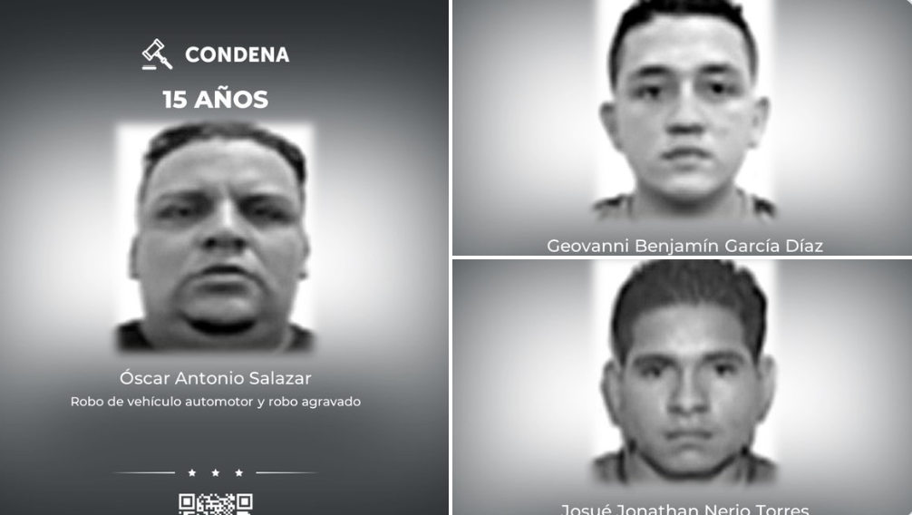 Los condenados son Josué Jonathan Nerio Torres, Óscar Antonio Salazar y Giovanni Benjamín García Díaz, quienes interceptaban a sus víctimas con arma de fuego para despojarlas de sus vehículos y pertenencias de valor. Luego de los asaltos, se daban a la fuga.