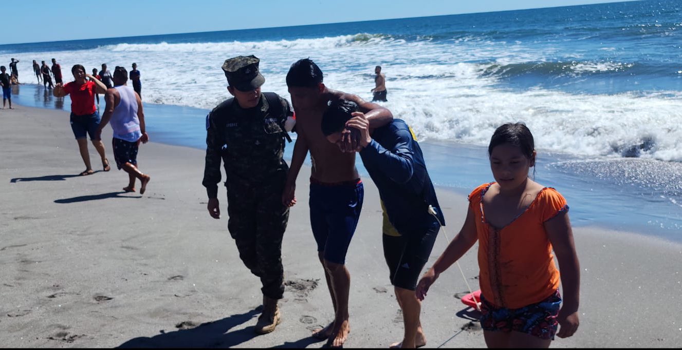Personal de guardavidas de la Marina Nacional logró el rescate exitoso de un joven identificado como Joshua Francisco Cano Ponce, quien fue arrastrado por una fuerte corriente marina mientras se encontraba en la Playa Cangrejera, en la jurisdicción del Puerto de La Libertad.