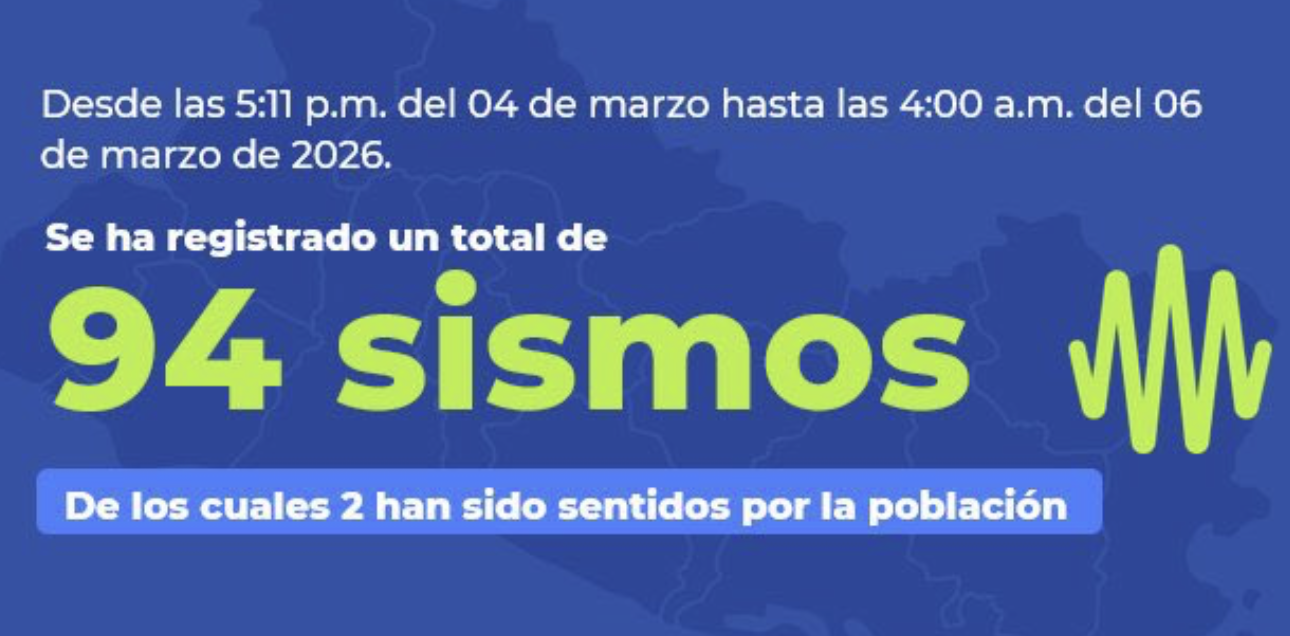 El Ministerio de Medio Ambiente y Recursos Naturales (MARN) informó este viernes sobre un incremento en la actividad sísmica localizada en el distrito de Juayúa, departamento de Sonsonate. Según el reporte técnico, desde las 5:11 p.m. del pasado miércoles 4 de marzo hasta las 4:00 a.m. de este viernes 6 de marzo, se han contabilizado un total de 94 sismos en la zona.