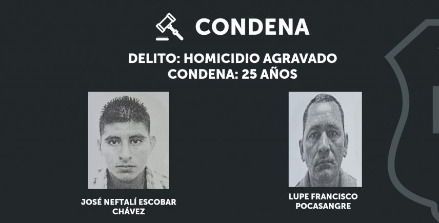 Gracias a las robustas pruebas presentadas por la Fiscalia General de la República (FGR), fue posible hacer justicia y que Lupe Francisco Pocasangre y José Neftalí Escobar Chávez fueron condenados a 25 años de cárcel, por el delito de homicidio agravado.