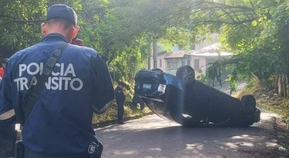 La Policía Nacional Civil (PNC) informó sobre un accidente de transito en el que se vio involucrado un microbús y un vehículo particular que terminó volcado.